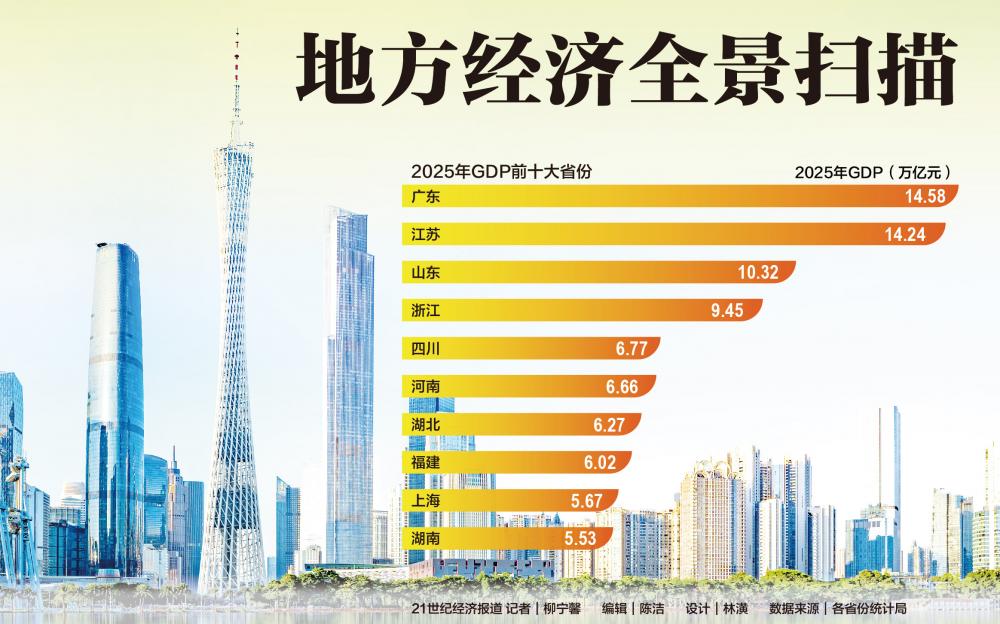 2025年,在外需不确定性加大的背景下,我国各省份稳住了基本盘,不少经济大省GDP创出新高。